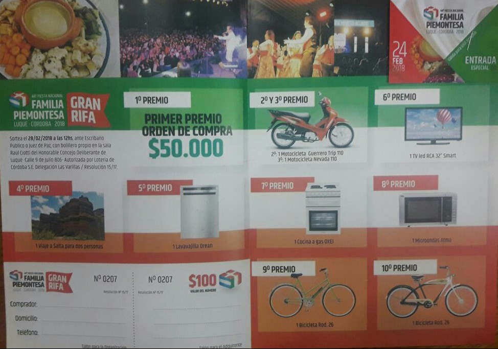 Presentaron la Rifa de la Familia Piemontesa 2018