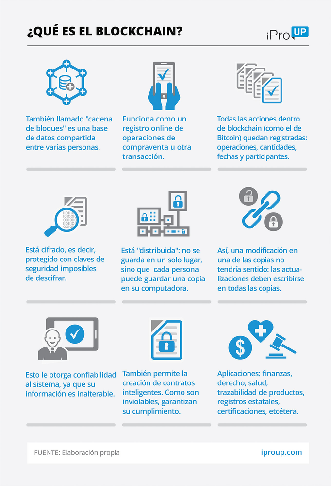 La cadena de bloques (blockchain) es una especie de registro contable distribuido en varios nodos de la red, que puede digitalizarse de modo trazable, transparente, encriptado, inmutable y totalmente configurable de acuerdo a los criterios y arquitectura de desarrollo», señalan los expertos y añaden: «La blockchain anima a imaginar un escenario futuro más eficiente, menos costoso y más transparente para las transacciones de activos».