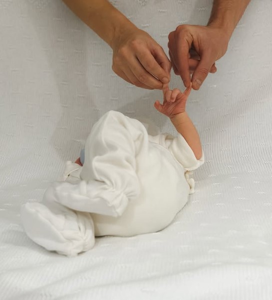 La fotografía elegida hizo referencia al icónico festejo de “araña” del delantero cordobés: el bebé aparece recostado sobre una manta blanca mientras sus padres sostienen sus manos simulando la celebración que identifica al jugador.