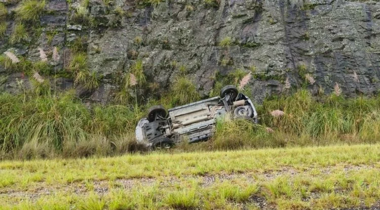 Por causas que se investigan, el rodado se despistó y quedó invertido sobre la carpeta asfáltica.